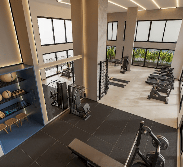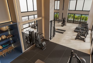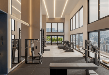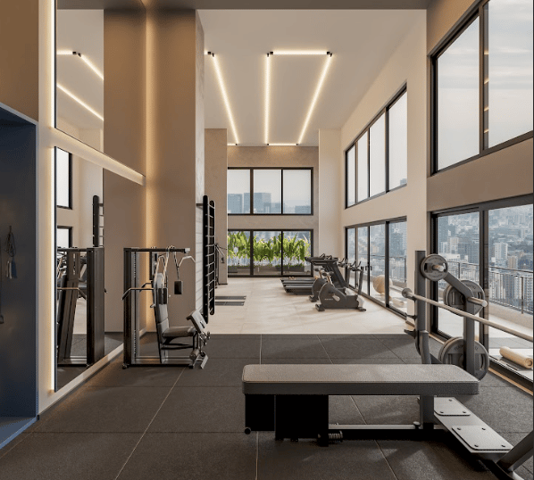 Projetamos uma academia sem igual para você, com 150m2 e com pé-direito duplo, esta academia totalmente equipada vai redefinir seus treinos.